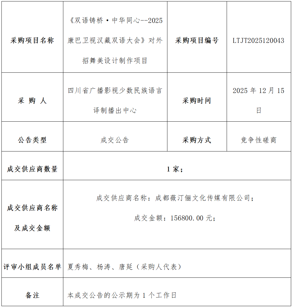 《双语铸桥·中华同心--2025康巴卫视汉藏双语大会》对外招舞美设计制作项目采购成交结果公示